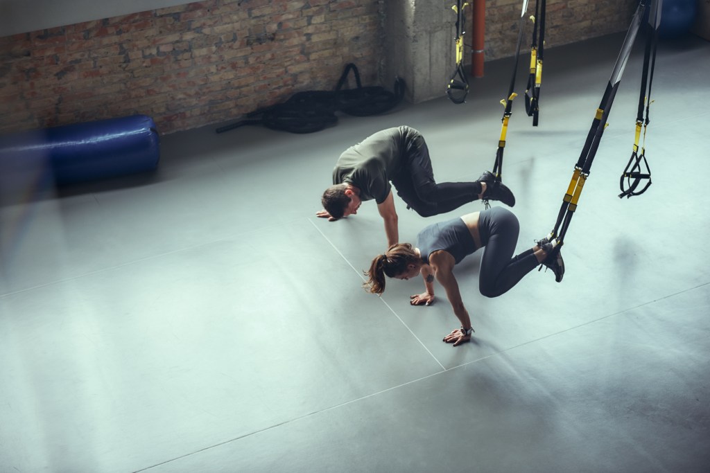 By now you might be thinking: “oh, planks, good. Something easy.” You would, however, be wrong, because we don’t want easy. We are going to kick this up a notch. Start in the plank position with your feet in the TRX straps and your hands on the floor. Move one arm onto your elbow, then the other. Return to starting position one arm at a time.